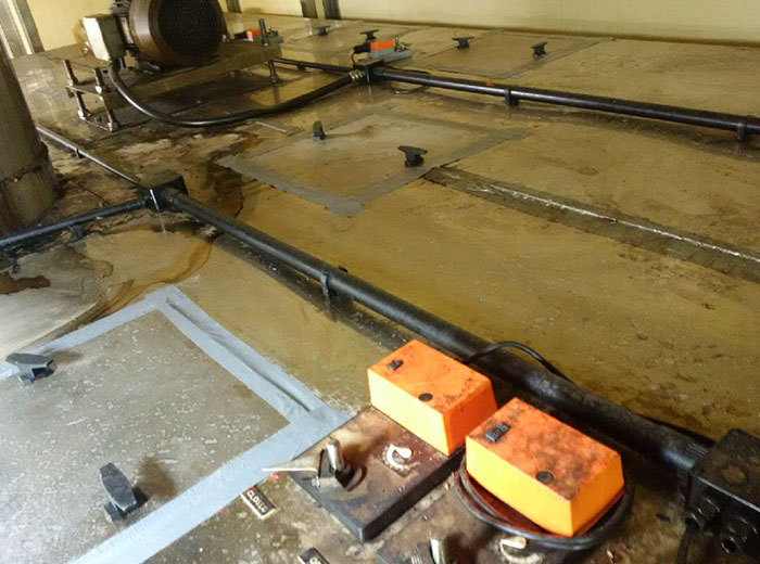 This is the top of the kiln after the upgrade. Note the former actuators have now been replaced with pneumatic ones. The upgrade also includes inverter driven main fan and exhaust fan motors.